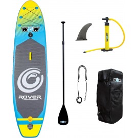 WOW Water Sports Rover 106 Inflatable Flatwater Stand-Up Paddle BoardFEATURES:Made for flat, calm watersGreat for recreational useInflatableThicker than traditional inflatable SUPs (6” thick vs 4” standard)Durable, PVC construction with military grade drop stitch materialsThick, durable designRemovable center finIncludes carry bag for easy storage ..
