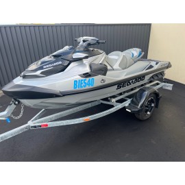 Seadoo GTX Limited – 2021 model in Liquid Grey. Only travelled 101 hours. 3-cylinder, 4 stroke engine producing 300hp with a seating capacity of 3 occupants. This watercraft is packaged with the Redco trailer as photographed. Featuring: IBR – Intelligent braking / reverse system which makes manoeuvring an ease. LINQ system allowing Linq compon..