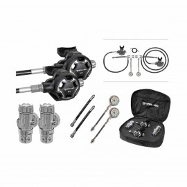 Apeks Sidemount Regulator KitAs the popularity of sidemount diving continues to grow around the world, Apeks delivers a regulator kit that contains all of the necessary hardware and accessories to complete your breathing set-up, including two award-winning XTX50 regulators.Kit Contents2 ea. XTX50 DIN regulators with 5 port swivel turrets One XTX50 ..